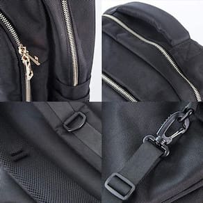 Seu design é amigável ao usuário, com alças ajustáveis que permitem usá-la como mochila, deixando as mãos livres e reduzindo a pressão na mão. Ela também conta com bolsos de armazenamento em ambos os lados, com tiras elásticas apertadas e duráveis, ideais para colocar um pano e uma chaleira, por exemplo.