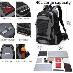Mochila de caminhada - ?Material resistente à água e durável?A mochila masculina de caminhada BOVIP é feita de material de poliéster de alta densidade resistente à água, extragrosso, resistente a rasgos, fibra de poliéster antiabrasão. Todos os pontos de tensão são reforçados com aderência à barra para aumentar sua longevidade. Basta levar esta mochila de caminhada e aproveitar sua viagem. - ?Design ergonômico e confortável?Para caminhantes apaixonados ou caminhantes, esta mochila de viagem é equipada com acolchoamento de malha respirável, com design ergonômico, sistema respirável e design leve que ajuda a reduzir a fadiga durante um longo dia de caminhada, que é a mochila perfeita para caminhadas ao ar livre. Esta mochila à prova d'água oferece conforto ao corpo mesmo quando a mochila de caminhada está completamente cheia. Fivela no peito projetada como um apito de sobrevivência para uso rápido e fácil em caso de emergência. - ?Grande capacidade e vários compartimentos?Esta mochila de caminhada com espaço de armazenamento de 40 L (53,8 x 31,8 x 20,3 cm). Mochila à prova d'água com design de vários compartimentos, inclui 1 compartimento principal, 1 bolso do meio, 1 bolso frontal, 1 bolso frontal de malha e dois bolsos laterais de malha. O compartimento principal tem divisórias para suportar laptop de 15,6 polegadas e bolsos para cinto de quadril são convenientes o suficiente para ajudar você a organizar ainda mais as coisas. O que ajuda você a organizar facilmente todos os seus itens essenciais de viagem. - ?Leve para uso diário?Nossa mochila de caminhada de 40 L pesa apenas 90 kg, fácil de carregar. Oferece resistência extra e desempenho duradouro com o peso mais leve possível. Esta mochila oferece espaço suficiente para viagens ao ar livre, acampamento, caminhada e pesca, serve como mochila de caminhada, mochila de viagem, mochila de acampamento, mochila de negócios e mochila casual, adequada para homens e mulheres. - Escolha de presente ideal: nossa mochila de caminhada masculina é uma ótima opção de presente para adultos para aniversários, Dia dos Pais, Natal, Ano Novo, Dia dos Namorados ou outros feriados para sua família, marido, namorado, namorada, amante, amigos.