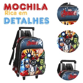 A Mochila De Carrinho Avengrs Preto Luxcel Ic39766Ag0600Un é perfeita para os fãs dos Vingadores! Com um design exclusivo e estampas dos personagens, essa mochila vai te acompanhar em todas as aventuras.
