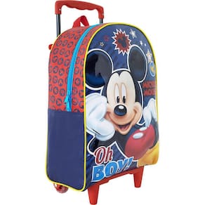 Mochila de Carrinho Mickey X1/21 Linha X1/21 de Mickey Mouse. Mala com rodas no tamanho 16. Compartimento amplo com fechamento em zíper. Painel frontal em PVC cristal estampado. Carrinho resistente em metal. Medidas aproximadas do produto - Comprimento: 28 cm - Altura: 46 cm - Largura: 16 cm - Peso: 770 g Ean: 7899768831802