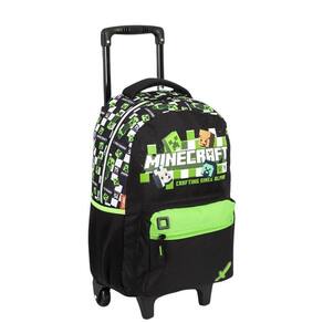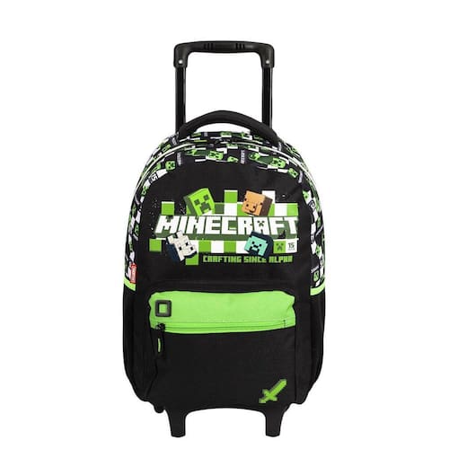 É hora de embarcar em um universo cheio de boas aventuras com a mochila de rodinhas oficial do Minecraft Os personagens mais famosos do jogo que dominou o mundo estão estampados em todo o tecido. Além do compartimento espaçoso para guardar os cadernos, livros e estojo, o bolso frontal é ideal para levar outros materiais menores. Enquanto isso, as rodinhas permitem uma rotina mais leve e sem esforço para os pequenos exploradores. Características Alça:De Mão,Espumada Cor:Colorido Ocasião:Escolar Tamanho:Grande Material:Poliéster Altura:50 cm Largura:32 cm Profundidade:20 cm Peso:1 kg Capacidade Total:18 L Marca: Não Informado Ean: 7899650150202