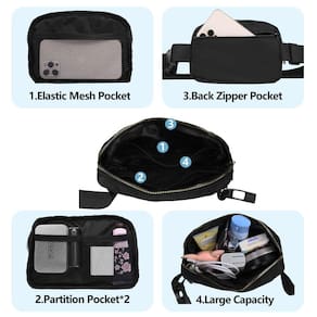 - Grande capacidade: os pacotes Belt têm um bolso principal + bolso traseiro+bolsa de inserção grande+bolso de cartão de inserção* 2. Você pode colocar seu cer, chave, fone de ouvido, óculos de sol, cosméticos, carteiras, passaportes, etc.