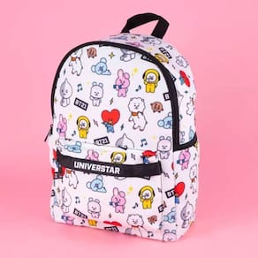 Mochila de Costa Branca Escolar Personagens BT21 K Pop Mochila de Costa Branca Escolar Personagens BT21 K Pop ===================================== Inspirada nos personagens adoráveis criados pelos integrantes do BTS, essa mochila é perfeita para fãs que buscam um acessório cheio de estilo, cor e personalidade.