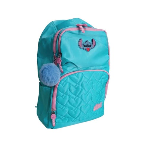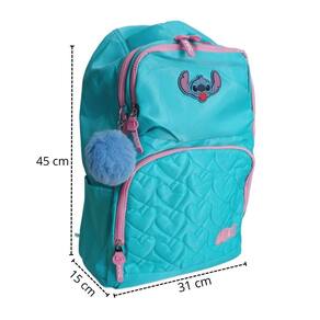 Características: - dimensões: 45 cm de altura x 31 cm de largura x 15 cm de profundidade, com capacidade aproximada de 21 litros. - material: feita de 100% poliéster, com forro também em poliéster, garantindo durabilidade e resistência. - estrutura: possui 03 compartimentos para melhor organização e uma alça de mão reforçada para transporte prático. - estilo único: logo emborrachado e design exclusivo do stitch que encanta fãs de todas as idades.