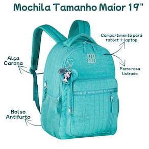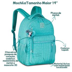 Características Mochila: - Alça de mão - Alça de costas - Alça carona - Bolso antifurto - Bolsos Laterais - Confeccionados em material nylon com Matelassê localizado com estrela e corações - Chaveiros pompom de coração, cadarço, medalhinha de metal e mascote 3D - Logo RB em metal - Zíper tratorado com puxadores com cadarço - Compartimentos para laptop + tablet- Forro rosa listrado