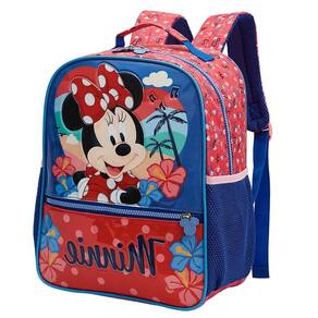 Características; Ocasião: Escolar, dia a dia, passeio Alça de mão acolchoada Alça de costas reforçada 1 Compartimento 1 Bolso frontal apenas no modelo da Minnie 2 Bolsos laterais para garrafa Zíper personalizado Produto estampa personalizado Disney