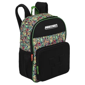 Mochila De Costas Escolar Infantil Minecraft Funtage Sestini Cor: Preto Ative o modo criativo e explore a rotina de estudos com a Mochila de Rodinhas Funtage do Minecraft Estampada com um vibrante mosaico dos elementos do jogo, essa mochila traz a magia do Minecraft para o dia a dia escolar. Ampla e funcional, ela possui um compartimento principal, bolsos laterais em elástico para garrafinhas e um bolso frontal com a icônica face do Creeper em 3D. As alças de costas acolchoadas garantem conforto e praticidade, tornando o transporte ainda mais fácil para os pequenos exploradores. Perfeita para quem busca estilo, diversão e conforto na escola