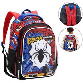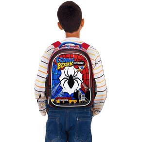 Mochila De Costas Escolar Infantil Spider Comic Book Hero Cor: Preto Mochila de Costas Escolar Infantil Spider Comic Book Super Hero - Inspirada no universo dos super-heróis, esta mochila combina estilo e funcionalidade para os pequenos aventureiros. Com estampas vibrantes em estilo comic book, ela é ideal para transportar materiais escolares com segurança e charme. Confeccionada em materiais duráveis, possui alças ajustáveis e acolchoadas para conforto o dia todo. Perfeita para fãs de ação e aventura