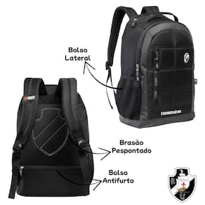 Características: - Confeccionada em Poliéster - Dois bolsos laterais - Puxadores de zíper personalizados - Escudo oficial do Botafogo - Compartimento principal espaçoso + bolso frontal - Alças acolchoadas e ajustáveis com etiqueta - Brasão Pespontado - Bolso Antifurto - Base resistente à agua