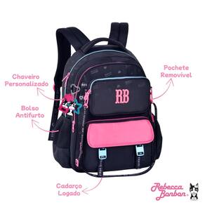Características Mochila: - Alça de mão - Alça de costas acolchoada e Ajustável - Bolso antifurto - Bolsos Laterais - Confeccionados em Soft - Chaveiros - tag de borracha e penduricalhos e mascote 3D - Logo RB em metal colorido - 2 em 1 Mochila com Pochete Removível - Forro rossa listrado