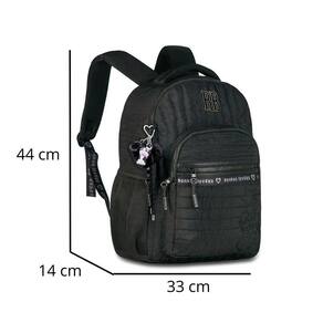 A Mochila RB27002 da coleção Rebecca Bonbon combina estilo sofisticado com praticidade no dia a dia. Confeccionada em nylon de alta qualidade com matelassê localizado em formato de estrelas e corações, além do cadarço acetinado logado que dá um toque exclusivo à peça. Seu compartimento principal é amplo e conta com divisória acolchoada para notebook e outra para tablet, garantindo mais segurança para os eletrônicos. Além disso, possui dois bolsos frontais com fechamento em zíper, sendo um deles com divisórias internas para organização extra, e bolsos laterais telados duplos ideais para garrafinhas. Para deixar o visual ainda mais encantador, acompanha chaveiro pompom de coração, cadarço, medalhinha de metal, mascote em 3D e uma cartela de adesivos exclusivos da marca. O conforto também é destaque: alças de costas acolchoadas e ajustáveis, alça de mão superior e alça carona para acoplar em malas. Para completar, a mochila traz o bolso antifurto na parte traseira, perfeito para guardar itens mais importantes com segurança. Os puxadores são personalizados, reforçando o charme único da linha. Dimensões aproximadas: 44x33x14cm Marca: Não Informado