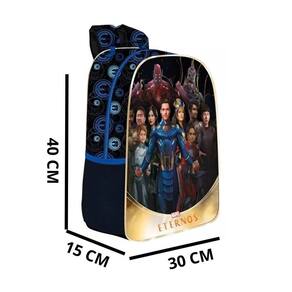 Especificações Linha Eternals Movie Mochila tamanho 16 Produzida em poliéster estampado resistente e vivos metalizados Seu painel frontal feito em PVC cristal 3D Dois bolsos laterais Alça de mão e puxadores personalizados Dimensão L x A x C : 30 x 40 x 15cm Marca: Não Informado Ean: 7795637424062