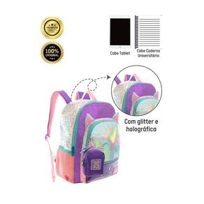 A mochila de costas gatinha é perfeita para as pequenas fashionistas que amam tudo que é brilhante e divertido. Com detalhes holográficos e glitter, ela é a companheira ideal para levar todos os materiais escolares com muito estilo e conforto.