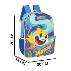 Mochila possui um espaçoso compartimento principal, permitindo que seu filho armazene todos os materiais escolares de maneira organizada. Além disso, apresenta um bolso frontal amplo com estampa do rosto do Baby Shark, adicionando um toque de alegria ao visual.