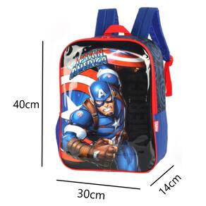 Mochila Escolar de Costas Marvel Avengers Capitão América A Mochila de Costas da Marvel Capitão América Luxcel é perfeita para transportar material escolar ou para uso diário. Com um design moderno e funcional, essa mochila possui amplo espaço interno, permitindo que você carregue tudo o que precisa de forma organizada e prática. Essa mochila possui um compartimento principal grande, com espaço de sobra para seus livros, cadernos e demais itens, além disso, conta com um bolso lateral para garrafas. Os puxadores do zíper são metálicos, adicionando um toque especial ao produto, além disso, a mochila possui uma alça de mão e alça de costas almofadadas. Fabricada em poliéster e pvc, essa mochila é resistente e durável. Características da Mochila Escolar: - 1 Bolso Principal com bastante espaço - 1 Bolso lateral para squeeze - Alças de costas acolchoadas e ajustáveis - Alça de mão reforçada na parte superior - Puxadores metálicos - Suporte para taggy identificação - Material: 70% Poliéster e 30% PVC Dimensões Aproximadas: - Altura: 40 cm - Largura: 30 cm - Profundidade: 14 cm
