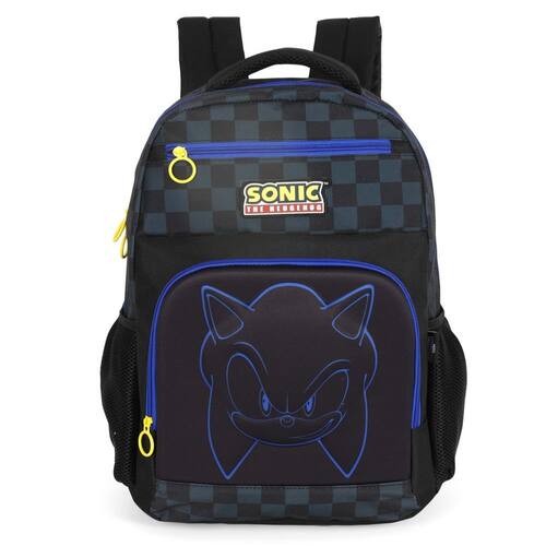 Mochila de Costas Luxcel Sonic Preto A Mochila de Costas Sonic é perfeita para quem busca estilo, praticidade e conforto no dia a dia escolar. Com um design moderno e inspirado no universo do Sonic, ela combina cores vibrantes e detalhes exclusivos que encantam os fãs. Fabricada em material resistente, garante durabilidade para acompanhar a rotina intensa dos estudantes. Seu compartimento principal espaçoso permite guardar livros, cadernos, estojos e outros materiais escolares com organização e segurança. Além disso, conta com bolsos laterais ideais para garrafinhas e dois bolsos frontais com zíper para pequenos objetos. As alças acolchoadas e ajustáveis proporcionam mais conforto no transporte, enquanto o formato ergonômico distribui melhor o peso nas costas. É ideal para escola, passeios e outras atividades do dia a dia. Características da Mochila Escolar: - 1 Bolso Principal com bastante espaço - 2 Bolsos Frontais com fechamento em zíper - 2 Bolsos laterais para squeeze - Alças de costas acolchoadas e ajustáveis - Alça de mão reforçada na parte superior - Puxadores personalizado - Estampa Sonic em alto relevo - Material: 100% Poliéster - Forro: 100% Poliéster Dimensões da Mochila Escolar: Altura: 44 cm Largura: 30 cm Profundidade: 16 cm Conteúdo: - 1 Mochila