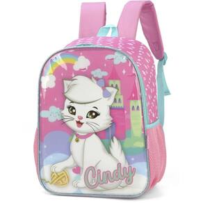 Mochila com bolsos laterias em tela com elástico, alças de costas espumadas e reguláveis, silk frontal, bolso frontal com zíper, alça de mão e etiquetas personalizadas.