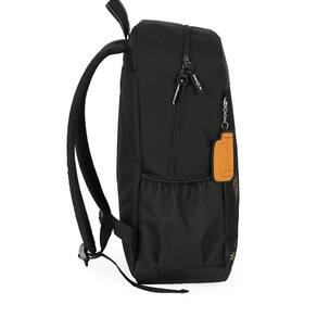 Mochila de costas com bolsos laterias com elástico, alças de costas espumadas e reguláveis, silk frontal, bolso frontal com zíper, alça de mão e etiquetas personalizadas, com compartimento para notebook.
