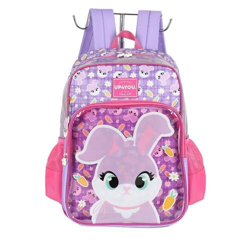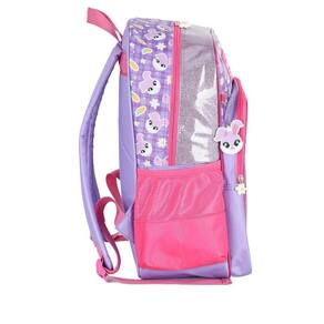 Mochila com bolsos laterias em tela com elástico, alças de costas espumadas e reguláveis, silk frontal, bolso frontal com zíper, alça de mão e etiquetas personalizadas.
