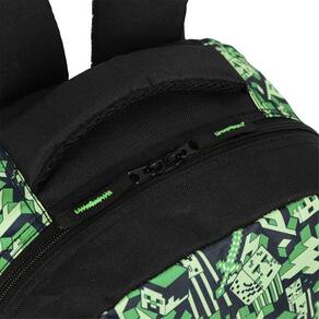 A Mochila Minecraft possui um design exclusivo, camuflado de elementos do jogo, para levar a diversão para a escola. Ela possui um amplo compartimento, para guardar todo o material escolar, bolsos laterais em elástico, para armazenar a garrafinha, e bolsos frontais de rápido acesso, para objetos pequenos.