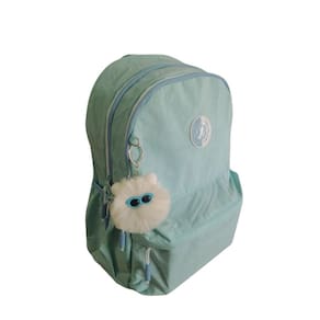 Mochila espaçosa, ideal para uso escolar, universitário ou dia a dia. Cor verde suave, trazendo leveza e estilo. Acompanha um chaveiro divertido de pelúcia branca com óculos azuis. Compartimentos com zíper duplo para melhor organização de materiais. Alças ajustáveis e reforçadas para maior conforto e durabilidade. Feita com material resistente e fácil de limpar.