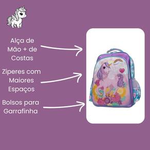 1 Bolso Principal, 1 Frontal e 2 Laterais para garrafinhas; Mochila de Costas com Alça Resistente Estampa Personalizada do Little Pônei;