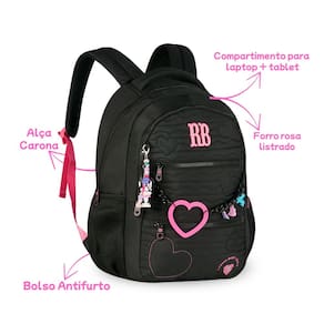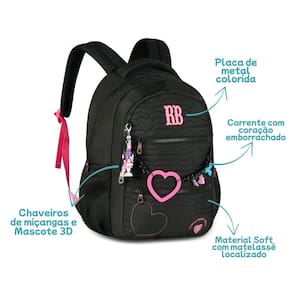 Mochila de Costas Rebecca Bonbon Juvenil Escolar Meninas - Cor: Preto