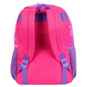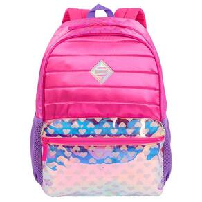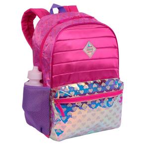 Mochila de costas Sestini ArcoIris, conta com alça carona, bolsos laterais em tela com elástico, tag identificador, bolso frontal com fechamento em zíper e etiquetas personalizadas.
