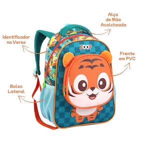 Características Mochila: - Estampa encantadora de Tigre - Tamanho ideal para passeios e uso diário - Alças acolchoadas e ajustáveis para mais conforto - Compartimento com zíper Personalizado e espaço para itens essenciais - Material leve, resistente e fácil de limpar - Orelhas em Pelúcia - Bolso Lateral Para Garrafinha - Identificador no Verso
