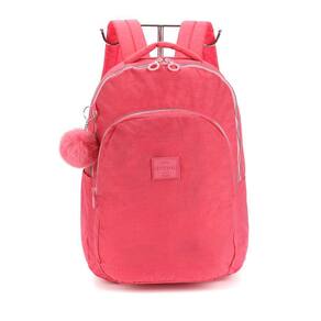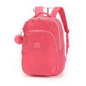 Material: 100% poliéster Forro: 100% poliéster Categoria: Escolar Compartimentos: 2 compartimentos frontais e 1 bolso lateral Fechamento em zíper Chaveiro de pompom Cor: Rosa salmão Medidas aproximadas: 33L x 43A x 23P
