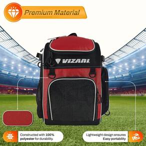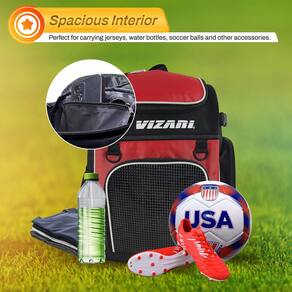 Vizari Mochila de futebol com compartimento de bola e bolso de bola ventilado e bolsos cargo laterais de malha para adultos e adolescentes