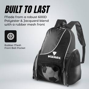 - Armazenamento multifuncional de equipamentos de futebol: diga adeus ao malabarismo com vários itens! A mochila de futebol Vizari Solano foi projetada para carregar todos os seus itens essenciais. Com um compartimento principal espaçoso e um grande bolso de bola de malha que abre pela frente, esta mochila de bola de futebol cabe confortavelmente em uma bola de tamanho 5 - tornando-a a melhor solução para organizar seu equipamento de futebol. Perfeita para bolsas de futebol juvenis para meninos e meninas.