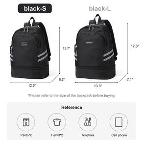 Coofay Bolsa de ginástica feminina – Mochila esportiva de viagem à prova d'água com compartimento para sapatos, Preto, Mochilas de viagem - ? Versão de tamanho pequeno ?: Observe que esta mochila é a versão de tamanho pequeno. Se você precisar embalar mais itens, escolha a versão de tamanho grande - "Preto-l". - Espaço de armazenamento multifuncional: cerca de 20 litros de espaço de armazenamento. O compartimento principal espaçoso pode conter de 3 a 5 blusas ou calças finas, os 3 bolsos de malha podem ser utilizados para armazenar iPad, carteiras ou carregadores bancários. O bolso interno com zíper pode ser utilizado para guardar documentos e cartões de crédito. Há também dois bolsos laterais que podem armazenar garrafas de água e guarda-chuvas. - ? Compartimento separado de sapatos?: o tamanho interno do compartimento de sapatos é de cerca de 7 x 29 x 17 cm (A × L × P), que pode acomodar um par de chinelos ou sapatos casuais de cano baixo e calçados esportivos, o que é conveniente para você substituir quando for para ginástica, natação, brincadeiras e outros esportes. - ? Bolso molhado ?: o bolso molhado pode guardar itens molhados, como artigos de higiene pessoal, toalhas, roupas de banho, etc., o que é conveniente para você usar quando estiver em uma viagem de negócios ou chuveiro após o exercício, e evita se molhar em outras partes da mochila. - ? Seguro?: o pequeno bolso antirroubo na parte de trás da mochila pode evitar que seu celular, carteira e outros objetos de valor sejam roubados, tornando sua viagem mais segura e segura. - ?Material durável e sólido?: feita de material de nylon resistente à água e durável, a mochila com zíper de metal garante o uso diário duradouro. Serve como uma mochila durável, mochila de ginástica masculina/feminina, você pode usá-la em qualquer lugar para fitness, viagens, acampamento, caminhadas e viagens noturnas.