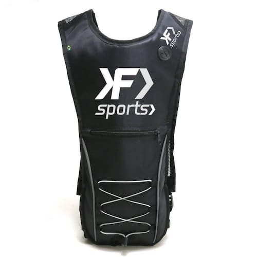 Especificações - marca: f sports - modelo: small - unissex: ideal para todos os gêneros. - compartimento térmico do sistema de hidratação de fácil manuseio. - alças de ombros e peitorais ajustáveis, em sistema de arreios. - bolso frontal com zíper para pequenos objetos. - capacidade do reservatório de hidratação: 2 litros. - material: nylon - dimensões: 40 cm x 18 cm. - saída para fone de ouvido: sim. - suporte fita para fixação da lanterna traseira. - faixas refletivas parte frontal. - faixas refletivas parte traseira para melhor segurança. - peso: 250g com reservatório . - costas acolchoada.