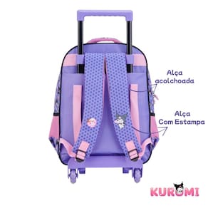 Mochila de Rodas Escolar Kuromi Hello Kitty Meninas Teen - Cor: Lilás