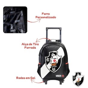 Mochila de Rodas Escolar Vasco Da Gama Meninos Infantil - Xerys Transforme a rotina escolar em uma verdadeira torcida com a Mochila de Rodas Oficial do Vasco! Com design exclusivo e funcionalidade total, é perfeita para meninos que carregam o amor pelo clube desde cedo.