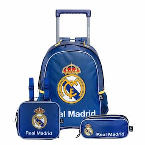 Características Mochila: - Confeccionada em Poliéster - Dois bolsos laterais em mesh - Estampa oficial do Real Madrid CF - Frente Sublimada + PVC Patch - Compartimento principal espaçoso - Alças de costas acolchoadas e ajustáveis - Rodinhas resistentes + alça retrátil estilo carrinho - Forro Interno Personalizado