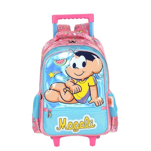 A Mochila de Rodas Turma da Mônica Magali é perfeita para acompanhar as pequenas com muito charme e funcionalidade! Com design divertido da personagem mais fofa da turma, possui estampa colorida, puxador em alumínio, rodinhas resistentes e alças acolchoadas para facilitar o transporte. Ideal para a rotina escolar, conta com compartimentos espaçosos e estrutura leve para mais conforto no dia a dia.