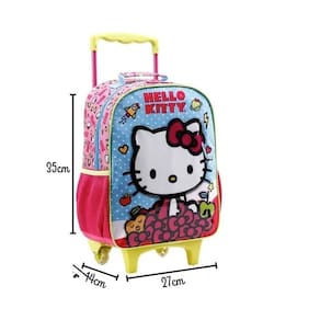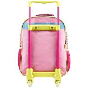 Em tamanho 14, produzida em poliéster resistente e estampado. Painel frontal PVC vincado com espuma com detalhes com glitter - Compartimento principal amplo , 2 bolsos laterais mesh, zíper com puxadores personalizados, alça de mão em nylon com poliester e piping forrado. Carrinho em metal com travas. DIMENSÕES: - Largura: 27cm - Altura: 35cm -profundidade: 14cm - Comprimento: 14cm PESO: 800gr Marca: Não Informado Ean: 7894506640005