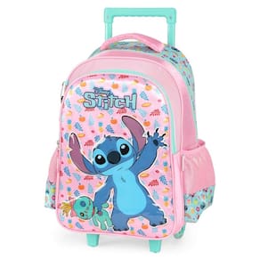 Leve seu personagem favorito para onde quiser! A Mochila com Rodas Stitch é super espaçosa, estilosa e resistente, deixando o dia escolar da criança ainda mais divertido. Possui rodinhas que facilitam o transporte e deslocamento, bolsos laterais para garrafinhas ou pequenos objetos e compartimento principal espaçoso.