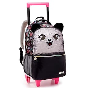 Vamos arrasar Essa mochila foi feita para as meninas que amam um detalhe especial Ela possui um design diferenciado e com o rostinho de Gatinho e até orelhinhas Toda em paetê e glitters para causar aonde chegar, com muito conforto para ir para escola e passeios Efeito no paetê que muda de cores, uhuuul Com rodinhas para facilitar a locomoção Garanta já a sua