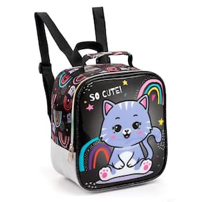 Contém: 01 un - Mochila de Rodinhas Gato com paete Preto - Seanite. 01 un - Lancheira térmica Gato com paete Preto - Seanite. 01 un - Estojo Duplo Gato com paete Preto - Seanite.