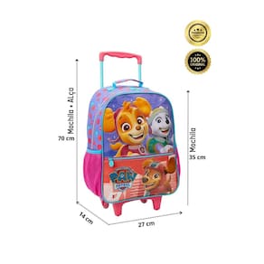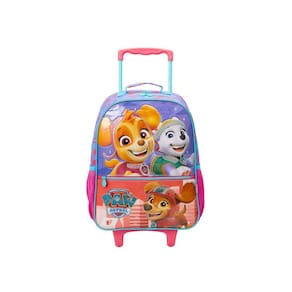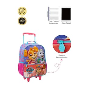 Estilo e funcionalidade: Combina o design encantador da Skye com a praticidade de uma mochila com rodinhas. Perfeito para presente: Ideal para presentear as pequenas fãs da Patrulha Canina em qualquer ocasião. Conforto e versatilidade: Alças acolchoadas e versáteis para diferentes formas de carregar. Prática: Fácil de limpar e transportar.
