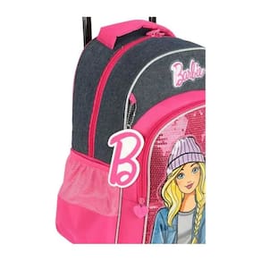 - confeccionada em poliéster e pvc - com amplo espaço interno. - com bolsos laterais para garrafinha. - com 2 bolsos. - com um bolso frontal espaçoso e um frontal médio. - com alça de mão acolchoada. - com puxadores de zíper personalizados. - chaveiro exclusivo barbie skate. - com rodinhas que giram 360 graus.