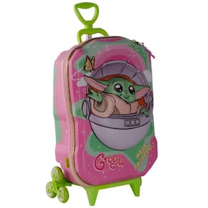 Mochila De Rodinhas 3D Maxtoy Star Wars Grogu Rosa Verde