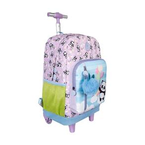 Mochila de Rodinhas College Panda Balão Lilás Juvenil Xeryus