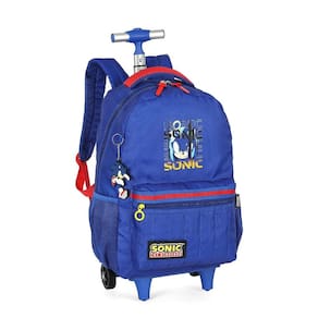 Mochila de rodinhas com alça, bolsos laterias em tela com elástico, alças de costas espumadas e reguláveis, silk frontal, bolso frontal com zíper, alça de mão e etiquetas personalizadas.