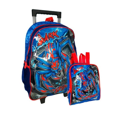Mochila De Rodinhas Dark Spider + Lancheira Azul E Vermelho
