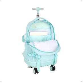 Mochila de Rodinhas Escolar com Alça e Divisoria Notebook Cor: Turquesa Mochila de Rodinhas Escolar Up4You A Mochila de Rodinhas Up4You 360 foi desenvolvida para oferecer praticidade, resistência e conforto no dia a dia escolar. Com design moderno e cor vibrante, é ideal para estudantes que precisam de espaço, organização e facilidade no transporte dos materiais. Equipada com rodinhas de silicone e carrinho embutido, garante durabilidade e deslize suave. Sua haste retrátil atinge até 101 cm, permitindo ajuste perfeito para diferentes alturas. Além disso, conta com alças acolchoadas no verso, possibilitando o uso também como mochila tradicional. O amplo compartimento interno possui divisória especial para notebook, além de bolsos funcionais que ajudam na organização de cadernos, livros e acessórios. Composição: 100% Poliéster Compartimento interno com divisória para notebook Cinco bolsos para melhor organização Suporte lateral para garrafa Rodinhas de silicone reforçadas Carrinho embutido com haste retrátil altura total: 101 cm Alças acolchoadas no verso para uso como mochila de costas Design moderno e funcional Estrutura reforçada e rodinhas de alta durabilidade Versátil: pode ser Utilizado como mochila de costas ou carrinho Amplo espaço interno com divisória para notebook Dimensões: Altura: 56 cm Largura: 33 cm Profundidade: 23 cm Conteúdo da embalagem: Mochila de Rodinhas Escolar Marca: Não Informado