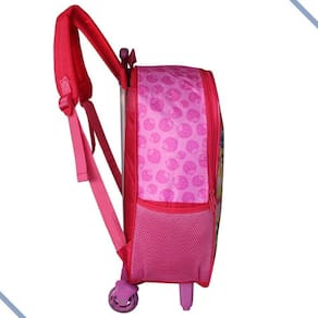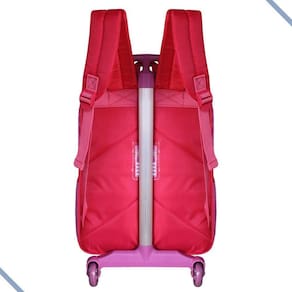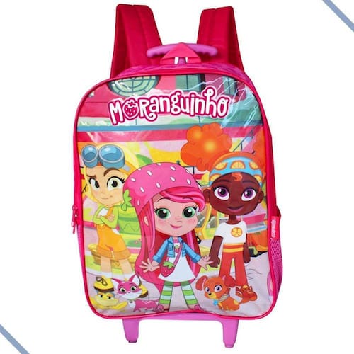 Mochila Escolar De Rodinhas Infantil Juvenil Da MoranguinhoOlha só que linda essa mochila escolar infantil juvenil da Moranguinho.Ela é linda e espaçosa e cabe todo material escolar da sua filha.Ela tem rodinhas de silicone rígido que faz com que dure bastante tempo as rodinhas.Amplo espaço interno, além de ter alça superior reforçada para carregar a mochila na mão quando necessário e tem alça nas costas também com regulagem de tamanho.Além disso tem a alça da mochila para transporte com altura na medida certa que são 85 cm em relação ao nível do solo.Mochila linda e sua filha vai amar.Descrição :- Mochila espaçosa.- Mochila com alça superior reforçada para carregar a mochila na mão quando quiser.- Mochila com alça nas costas para carregar nas costas quando quiser, ah, e tem regulagem de tamanho as alças.- Amplo espaço interno para colocar livros, cadernos, apostilas e qualquer outro material escolar da sua filha.- A Altura da haste em relação ao nível do solo fica com 85 cm.- Tem bolso lateral para colocar garrafinha de água, suco ou refrigerante.Dimensões :Altura :40 cmLargura :30 cmProfundidade : 15 cmAltura da haste em relação ao nível do solo são 85 cm.Capacidade da mochila : 18 litros.
